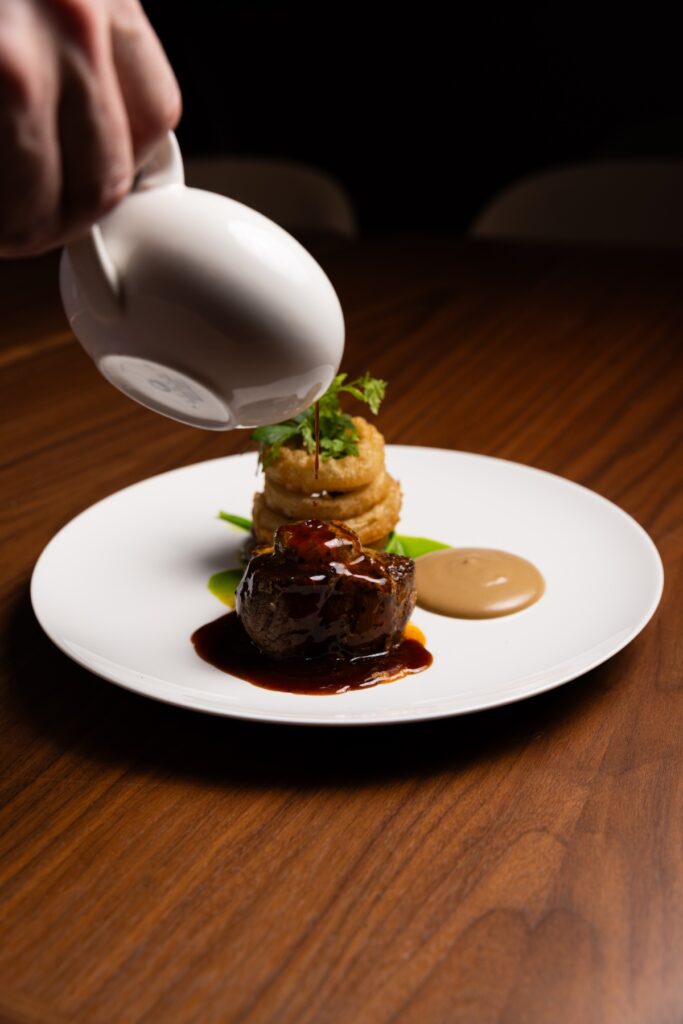 Grillattua härän sisäfileetä, rakuunaperunaa ja tryffelikastiketta / Grilled beef tenderloin, tarragon potatoes and truffle sauce