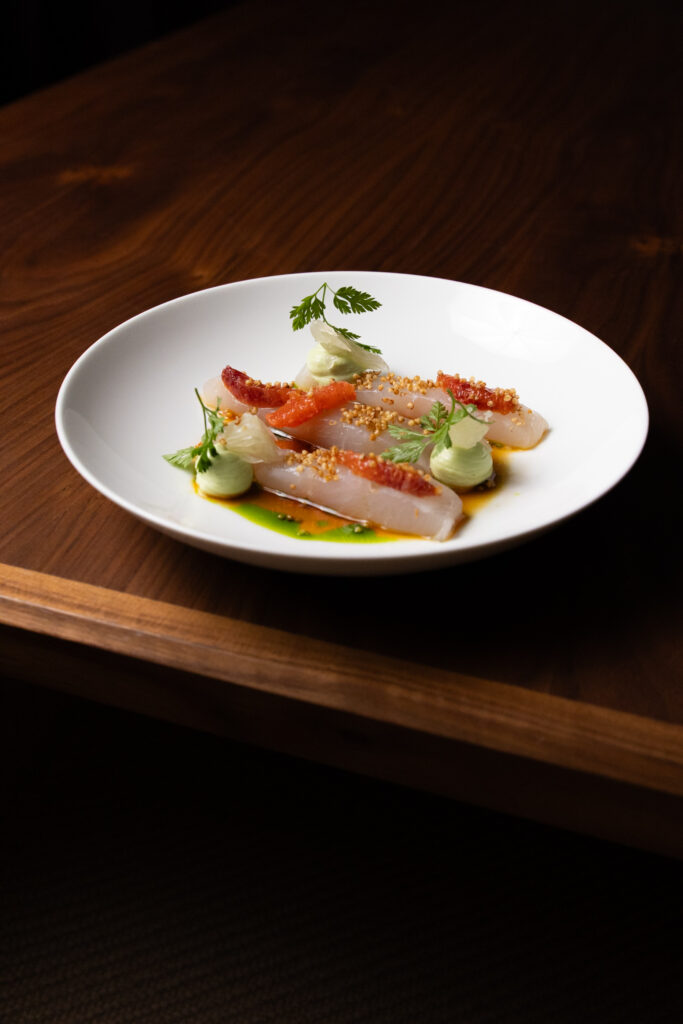 Siikacrudo, sitrusta ja avokadokreemiä / Whitefish crudo, citrus and avocado cream