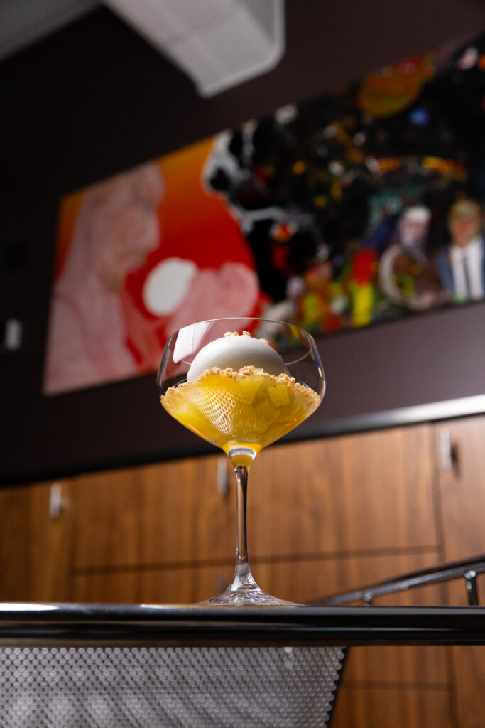 Karamellivanukasta, valkosuklaata ja tyrnisorbettia / Caramel pudding, white chocolate and sea buckthorn sorbet